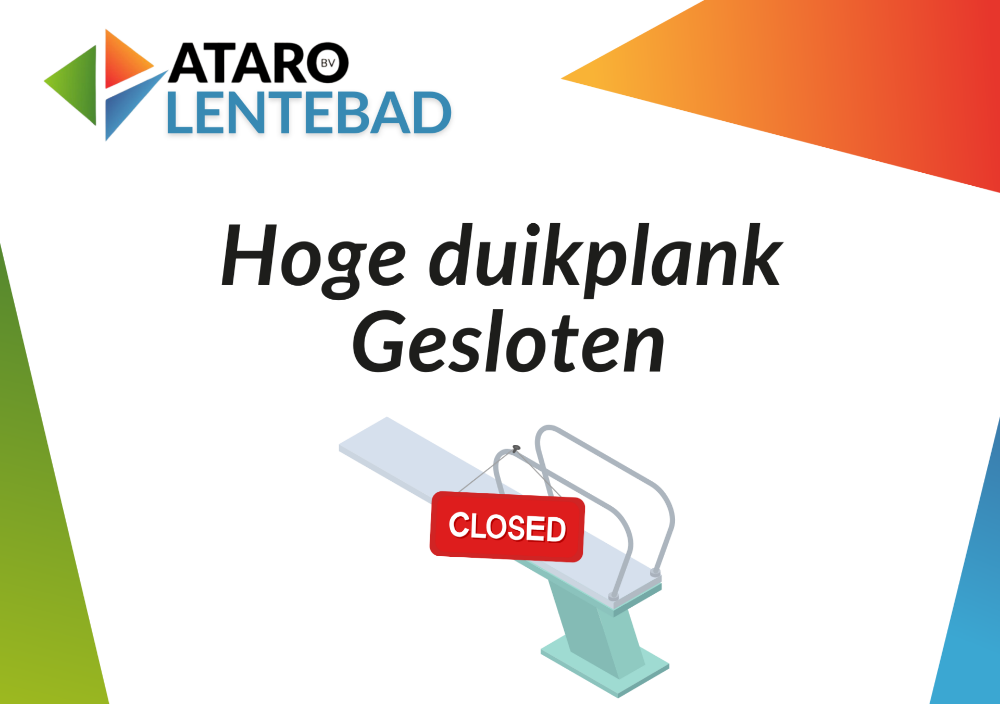 Vanaf heden is de hoge duikplank in ons zwembad helaas tijdelijk gesloten.